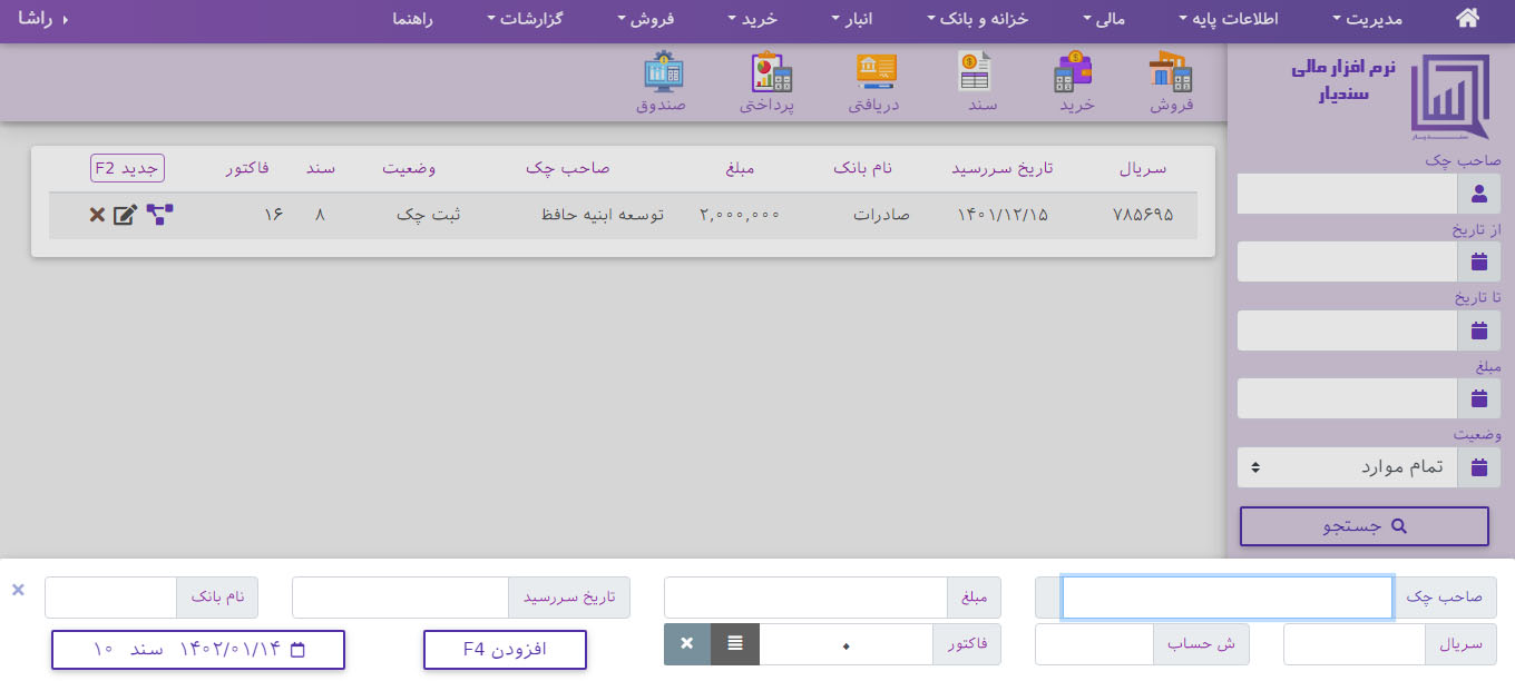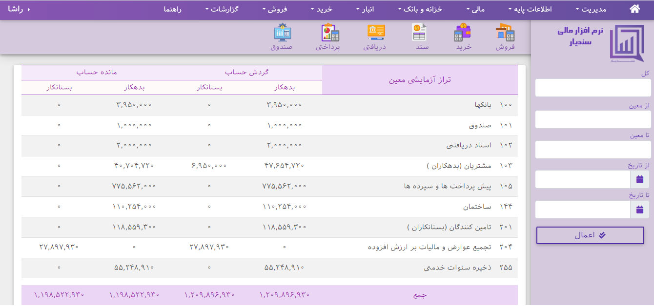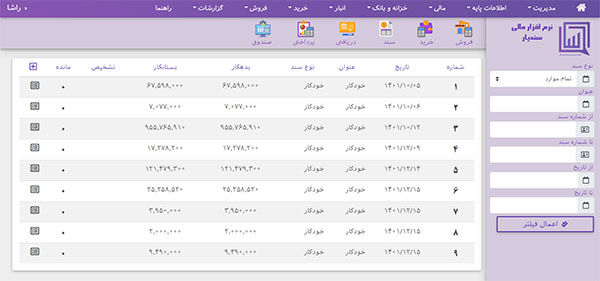نرم افزار حسابداری سندیار یک نرم افزار حرفه ای در عین حال ساده و روان همراه با کنترل های داخلی است سادگی این نرم افزار از آنجا مشخص می شود که کاربر جدید نیازی به آموزش چندانی ندارد ،تنها کافیست مختصر دانشی از حسابداری داشته باشد بعد می تواند به راحتی با نرم افزار سندیار کار کند